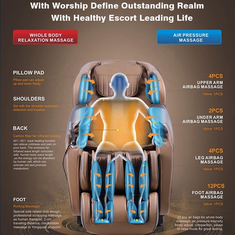 Roboking Plus is a luxury zero gravity 3D massage chair. It is a full body massage chair including back massage, calf massage, foot massage, hand massage, shoulder massage based on biomechanics, ergonomics and model physical therapy, aim to human skeletal characteristics, combine with zero power, longer curved rail massage, modern physical stretch, point, total with 22 air bags. It will bring you supreme massage experience when you at home, keep health and activity every day. Intelligent voice recognition system makes it easier to control the massage chair. There is no need to get up and adjust the hand controller in the massage process to enjoy more comfort.