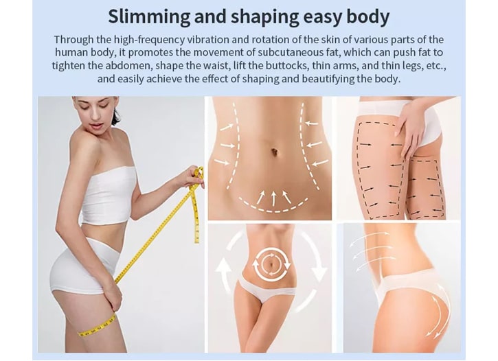 Using high-frequency vibration and rotational massage, this body shaper targets stubborn fat across the abdomen, waist, thighs, arms, and hips. It stimulates circulation, helps break down fat deposits, and firms the skin—making it easier to tone your curves, lift problem areas, and achieve a smoother, more contoured body with regular use.
